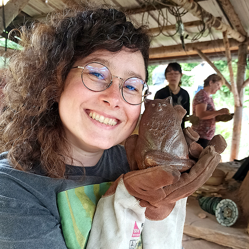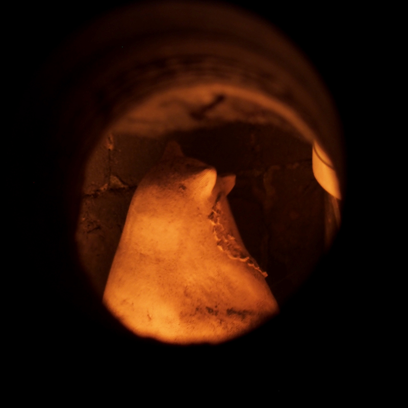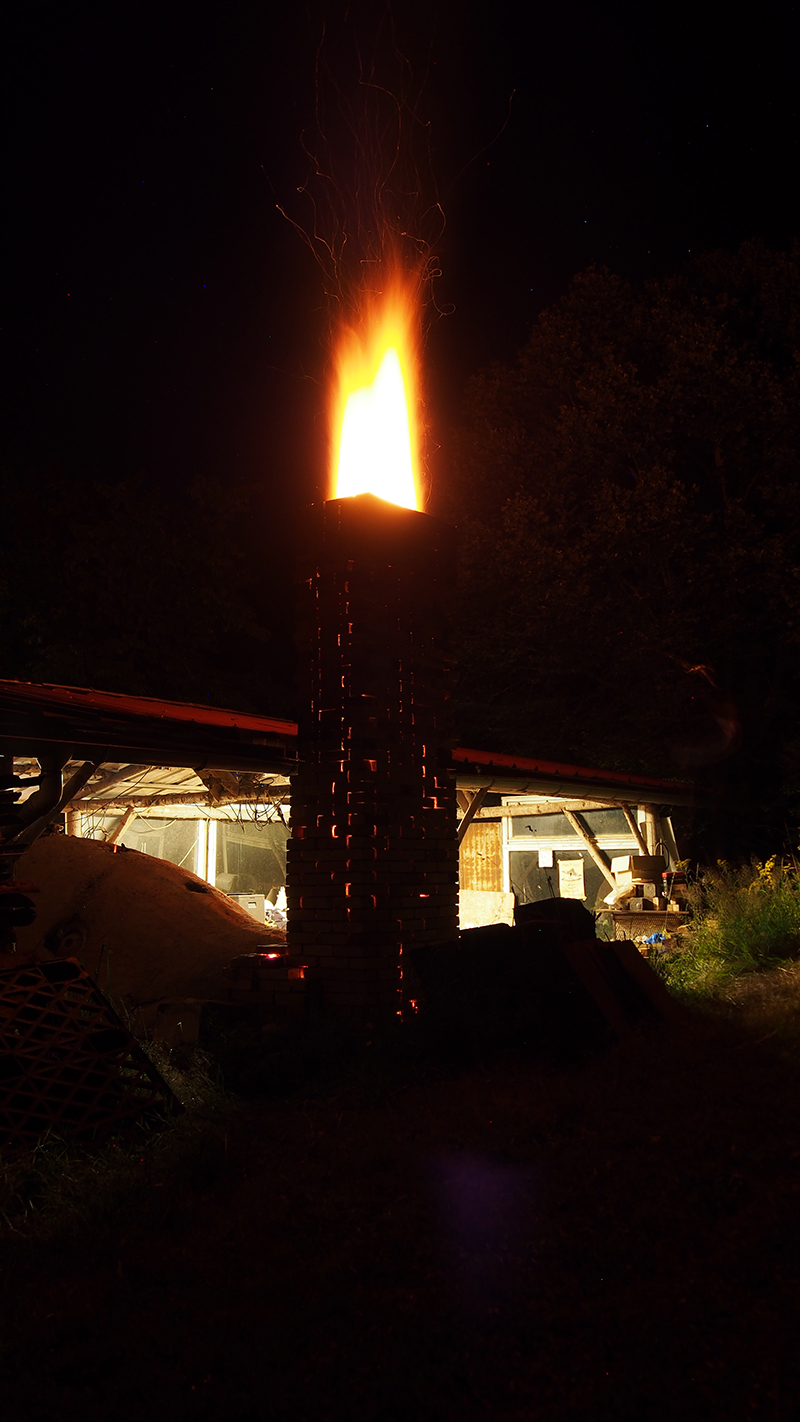 J’étais de garde de nuit de 2h00 à 8h00 du matin lors de cette étape. Nous devions charger le four à un rythme régulier mais pas soutenu. Ce qui était intéressant c’est qu’en écoutant le four et les crépitements du bois, nous pouvions savoir à quel moment remettre du bois dans le four. J’ai beaucoup aimé apprendre à utiliser tous mes sens pour comprendre la cuisson. Ce n’est pas chose aisée mais je comprends mieux la magie qui ressort de cette osmose avec le four et ce processus de cuisson. Et je suis d’autant plus admirative de ces céramistes expérimentés qui savent conduire leur cuisson à l’œil et à l’oreille.
